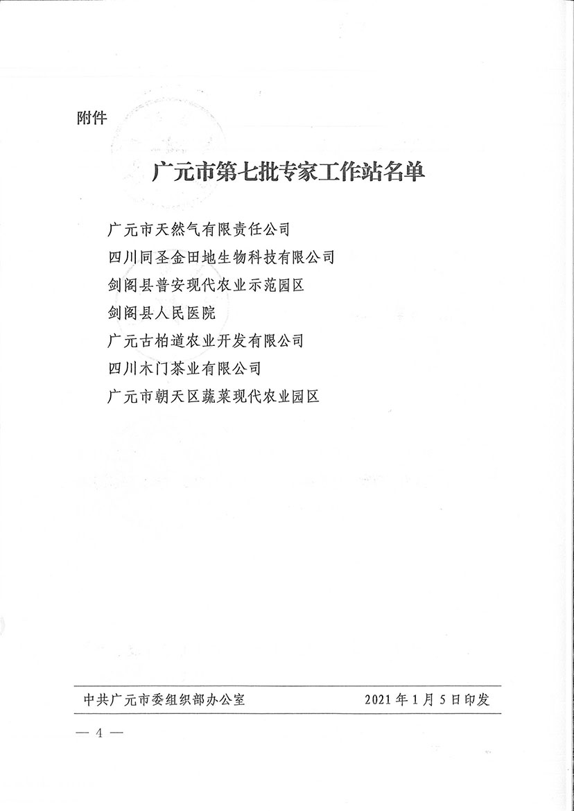 ℱ 近日,广元市非人工气股份有限心责任心工厂被广元市安排部等10部门审核批准认定为广元市第七批专家工作站。