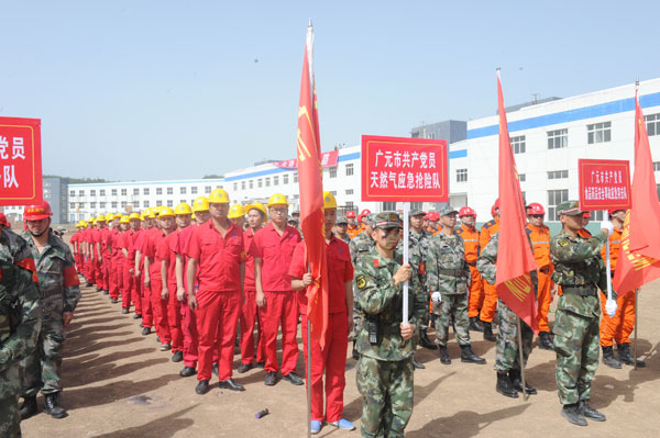 广元市天然气公司应急中心组织共产党员天然气应急抢险队共计51人参与,演练了应急队伍集结科目,在现场观摩了特警、武警特战技能演示及群体性事件处置演练。在整个活动中,所有成员高度重视,积极参与,步伐整齐,口号嘹亮,圆满完成了各项演练任务。在本次应急演练中,队员们不但提高了防暴处突认识和水平,展示了公司共产党员天然气应急抢险队是敢打硬仗、善打硬仗的良好精神面貌和企业形象。