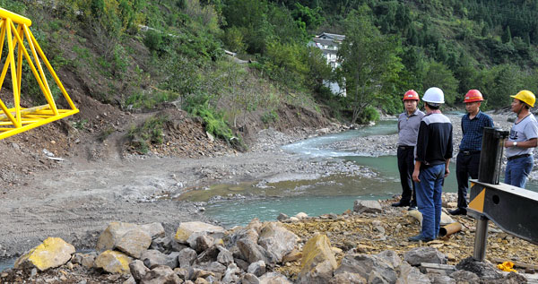 在广朝线朝天沙河洪灾损毁段施工现场,王志强总经理向施工人员详细询问了安全管理制度、安全操作规程,检查了安全设施,王志强总经理要求,施工单位要安全、文明施工,要严格按照安全生产预案和制度执行,要把人民群众的生命财产安全放在一切工作的首位。