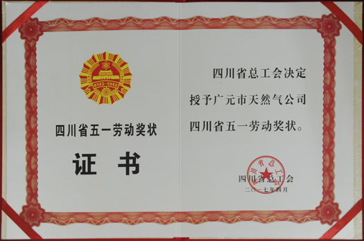 市天然气公司荣获“四川省五一劳动奖状”荣誉称号