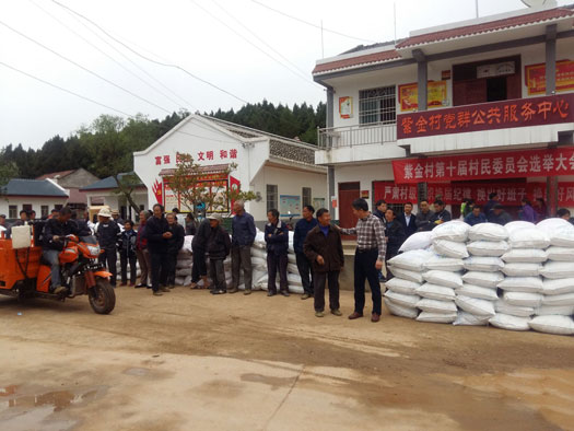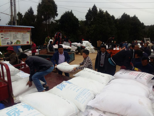 2017年,是公司对口帮扶的省级重点贫困村昭化区陈江乡紫金村脱贫攻坚决胜之年,为进一步帮助农户发展农业生产,促进农户增产增收。4月20日,公司开展“真情助春耕•送化肥下乡”活动,将24.5吨春耕急需的碳铵、尿素,送到了紫金村267户农户(含212户非贫困户)手中,有力解决了春耕肥料不足的燃眉之急,用真情赢得了群众的点赞。
