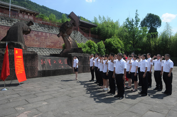 为纪念中国共产党建党96周年,深入开展爱国主义教育,纵深推进“两学一做”学习教育常态化制度化,激发党员干部的历史使命感和社会责任感,6月26日,利州分公司党支部联合发展部党支部组织全体党员前往南山红军文化园重温入党誓词,接受红色精神洗礼,开展专题党课教育活动。