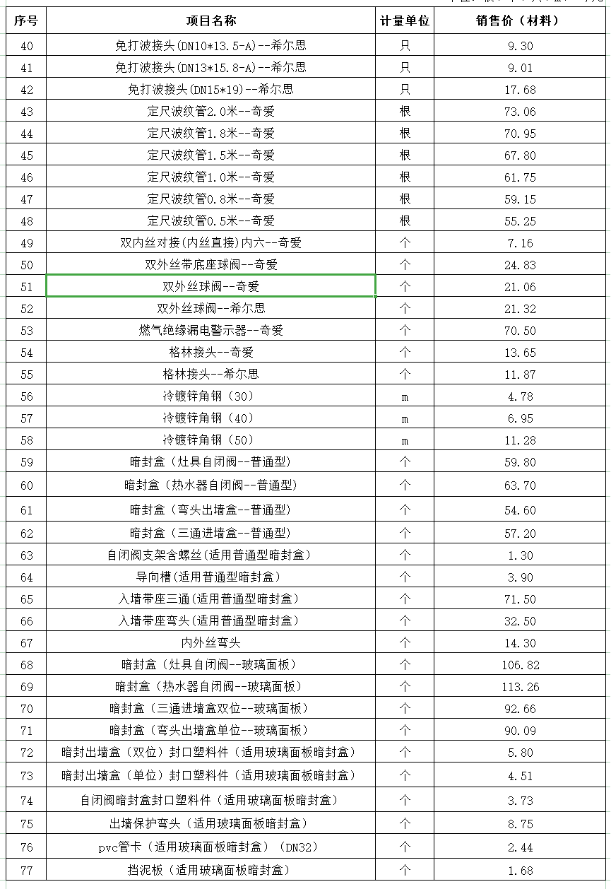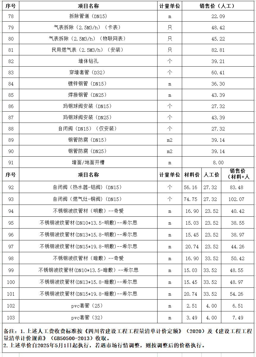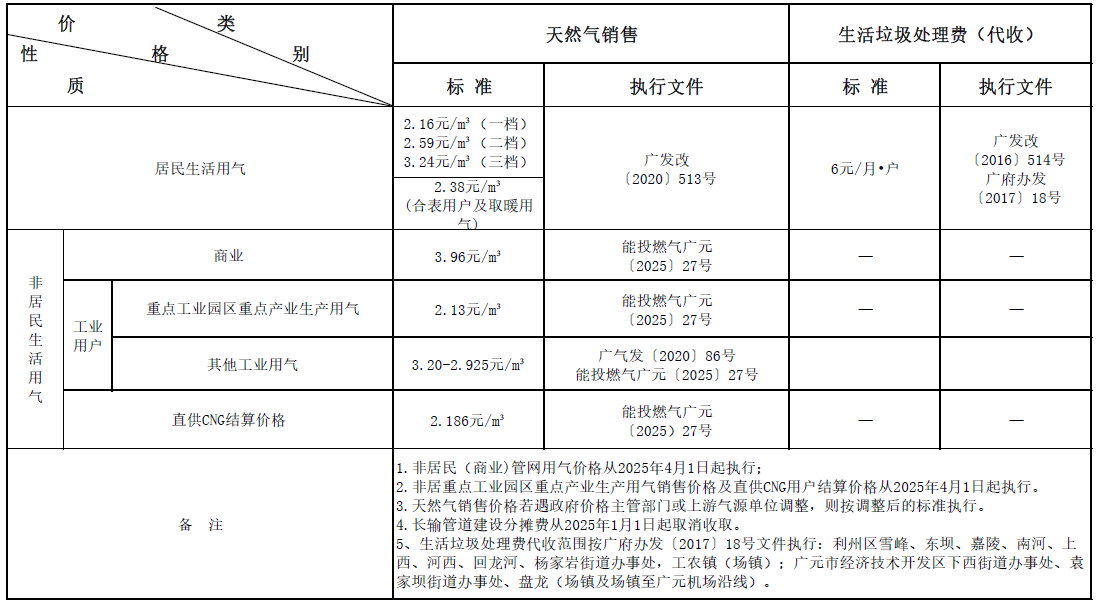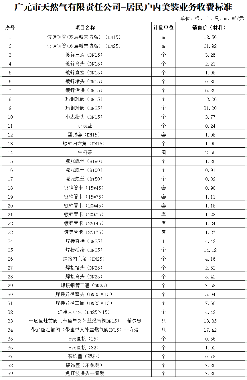 广元市天然气有限责任公司收费标准一览表