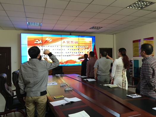 2016年4月29日(星期五)上午11:00,按公司党委“两学一做”学习教育工作相关要求,行政部党支部组织全体党员,召开了“两学一做” 学习教育工作动员会。会上,支部书记卢蓉传达了王志强书记在公司党委会的主要讲话精神,对支部2016年的“两学一做”工作进行了部署和安排,组织支部党员一起重温了入党誓词。